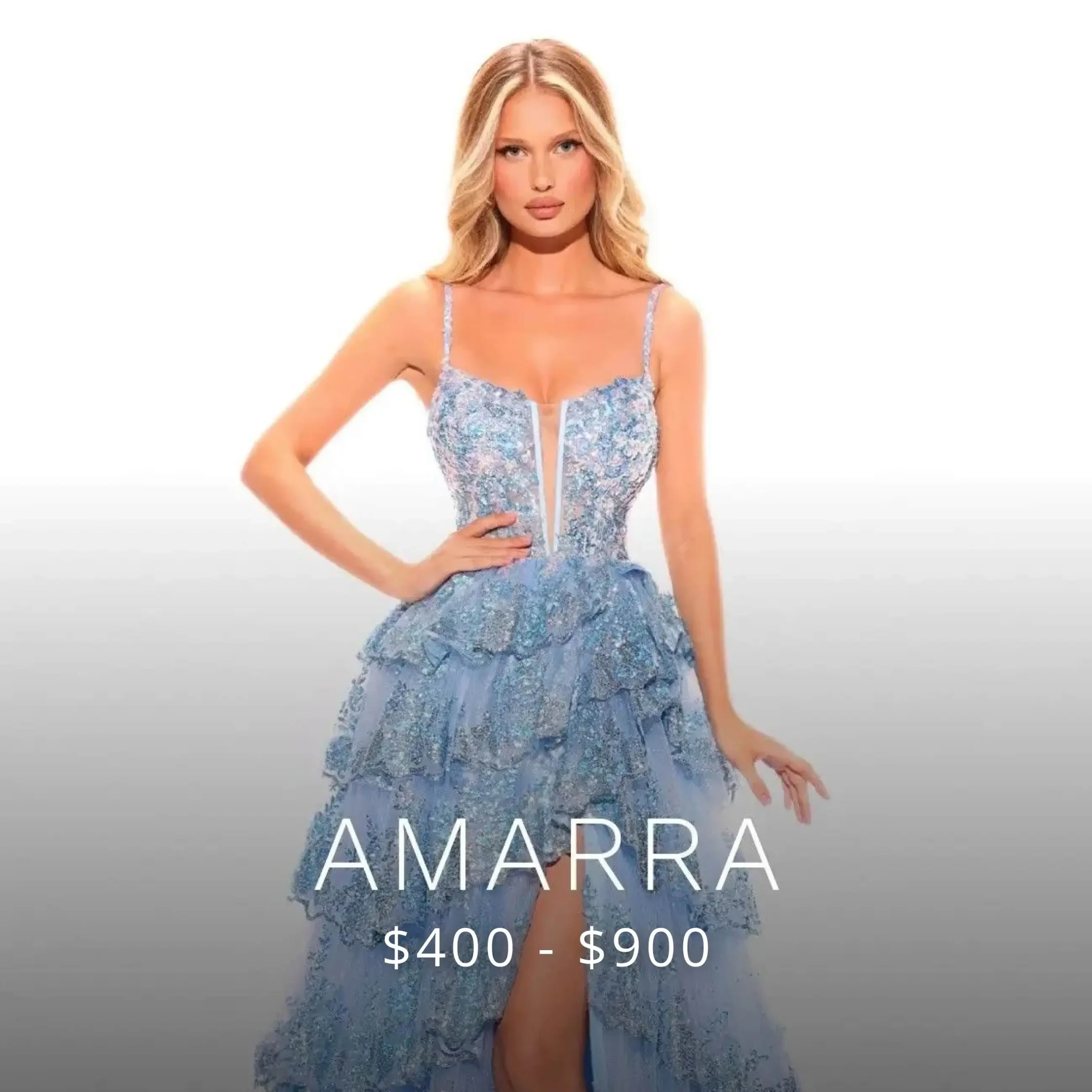 Our stunning prom collection's prices start at $400 and go up to $1700.